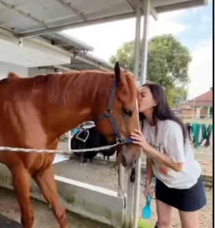 Momen kebersamaanya dengan kuda kesayangannya itu dibagikan oleh Aura Kasih lewat media sosial Instagramnya.