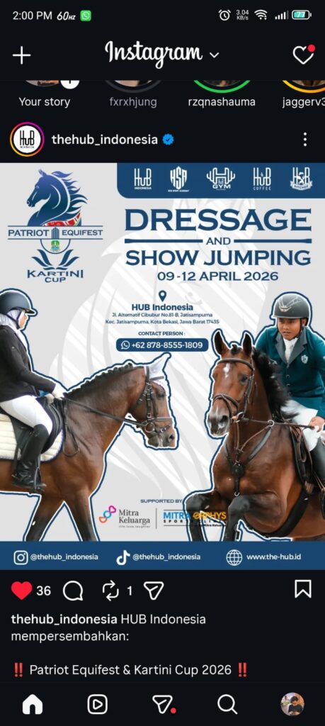 Tags: atletAtlet BerkudaBerkudaDressageHub IndonesiaKartini Cup 2026kudaOlahraga BerkudaPacu KudaPacuan KudaPatriot Equifestriderrider nasionalShow Jumping